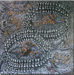 Schwanz beißende Schlange formen, als Symbol für das Unendliche.