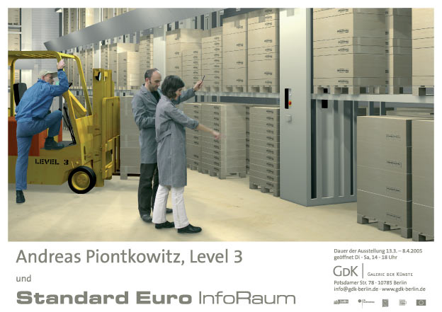 Untiefen unserer Alltagskultur und nebenbei sich selbst Damit haben wir vor uns: Taxonome, deren Untersuchungsgegenstand ein signifikant anderer ist als derjenige von Biologen oder Linguisten, die sich nichtsdestotrotz in sehr starkem Maße der Sprache bedienen, um den Aufbau eines kulturellen Systems zu beschreiben. Hier vergegenwärtige man sich nur die aberwitzige Nomenklatur ihres Systems, das en passant Wissenschaftsterminologie und Verwaltungsklausulierungen persifliert. Dies ist aber nur ein – wiewohl sehr attraktiver – Nebenschauplatz. Das Herzstück der Standard Euro‘ schen Taxonomie liegt in seinem System und in seinen Beständen. Hieraus speist sich der untergründige Witz der Arbeit, ihre Potenz und Relevanz. Denn während auf den ersten Blick ein besonderes Faible für das Absonderliche, eher Abseitige, vielleicht absurd Erscheinende als Auswahlkriterium das Charakteristikum dieser Sammlung zu sein scheint, ist es doch vielmehr so, daß erst die Art der Auswahl und dann der Darstellung das ‚Typische‘ in seinem skurrilen Charme, seinen abgründigen Konnotationshöfen, seinen mitunter entlarvenden Formalismen sichtbar macht. Der ‚Bestand‘ von Standard Euro besteht bisher aus dem System mit den Bereichen ”DiInf” (DieInfos), ”DiFir” (DieFirma), ”NorFi” (NormFilz), ”GreFE” (GrenzenFürEuropa), ”DeVer” (DerVerein), ”EheMa” (EheMachen) mit den entsprechenden ‚Belegstücken‘; dies sind Bildkürzel oder allgemein bekannte Bildformen. Von der medialen Aufbereitung her selbst standardisiert liegt der Bestand in Form normierter InfoKarten, InfoRäume und des InfoNet vor, also digital, analog in Form von Objekten, Papierarbeiten, Fotos und darüber hinaus in der Etablierung von Raumsituationen. Die einzelnen Belegstücke selber finden sich in Normkisten von 70 x 50 x 10 cm Größe archiviert. Ist das ”Einkisten” (=Archivieren) bereits eine Methode aus dem Wissenschaftsbereich, so kann erst recht das Stapeln der Kisten als attraktives bildliches Äquivalent zum Verfahren der ”historischen Schichtung” gelten. Bei den archivierten Belegen handelt es sich zudem um Transformationen von Realien, das heißt von gefundenem oder dokumentiert gefundenem Alltagskulturgut wie bestimmten Bildern, Formen, Materialien. Diese Funde sind Ideengeber für Objekte, die dann extra hergestellt werden; in enger Anbindung an ihren Ursprung im Gewöhnlichen, aber eben mit dem entscheidenden shift / der entscheidenden kleinen Verschiebung, so daß sie ins Raster von Standard Euro passen und als Belegstück eine ihrer Behauptungen visualisieren. Durch das gezielte Isolieren, Analysieren, Transformieren und der öffentlichen Wahrnehmung wieder neu / anders Zuführen solcher Funde werden die Belege zu besonderen, sprechenden kulturellen und auch kulturhistorisch relevanten Zeugnissen. Aus kunsthistorischer Sicht gilt es hier eine deutliche Affinität zu wichtigen Strömungen der Kunst der 1990er Jahre zu konstatieren, in denen sich Diskurse um die Themen Alltag und Alltagszeugnisse und die Methoden des Sammelns und Archivierens bündelten. In unserem Zusammenhang ergiebiger dürfte die Beobachtung sein, daß sich Standard Euro mit dem Sammeln und Archivieren von Belegen, die ihren Ursprung und ihre Begründung in aktuellen zeitgenössischen Realien tragen, in eine gewisse Nachbarschaft zur Zeithistorischen Archäologie begibt, einer noch jungen Wissenschaftsdisziplin, die, ähnlich der Kultursoziologie in den 1990er Jahren, noch ihrer wissenschaftlichen Begründung als interdisziplinäre Forschungsrichtung zwischen Archäologie und Geschichtswissenschaft harrt. Durch die Entwicklung eines eigenwilligen Systems sowie einer eigenständigen Nomenklatur geht Standard Euro deutlich auf Distanz, ohne methodische und thematische Anleihen zur Kultursoziologie und Zeithistorischen Archäologie zu leugnen. Es zelebriert ein selbstironisches Spiel von Aneignung und Brechung (auch darin Diskursen der 90er verwurzelt); sein Skeptizismus bricht sich Bahn in dem Moment, in dem es den Objektivierungs- und Klassifizierungswahn der Wissenschaft durch einseitige Forcierung bestimmter Aspekte, durch offengelegte Fakes und durch sprachliche Absurdismen unterläuft. Den Fokus allerdings ausschließlich auf solche Brechungen zu richten, griffe beim Versuch, sich das Denksystem Standard Euro zu erschließen, zu kurz. Vielmehr