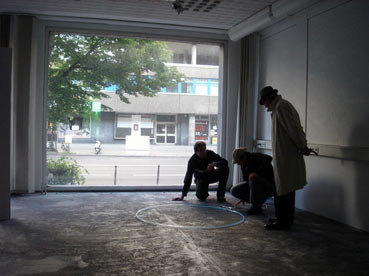 auf dem Boden. Im Raum gerinnen seine Klangschatten - ein voreilender